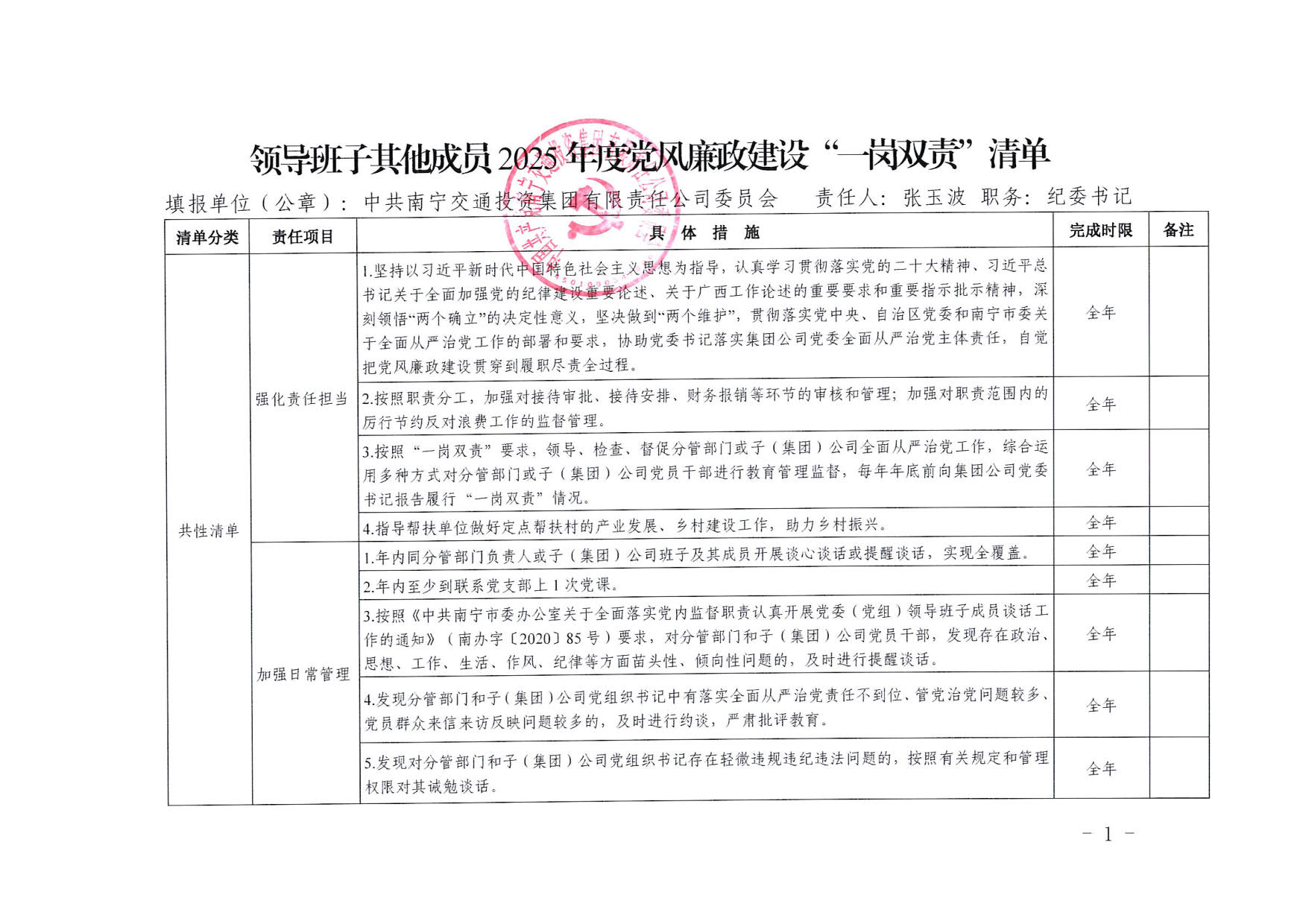 南寧交投集團(tuán)領(lǐng)導(dǎo)班子其他成員2025年度黨風(fēng)廉政建設(shè)“一崗雙責(zé)”清單(二)