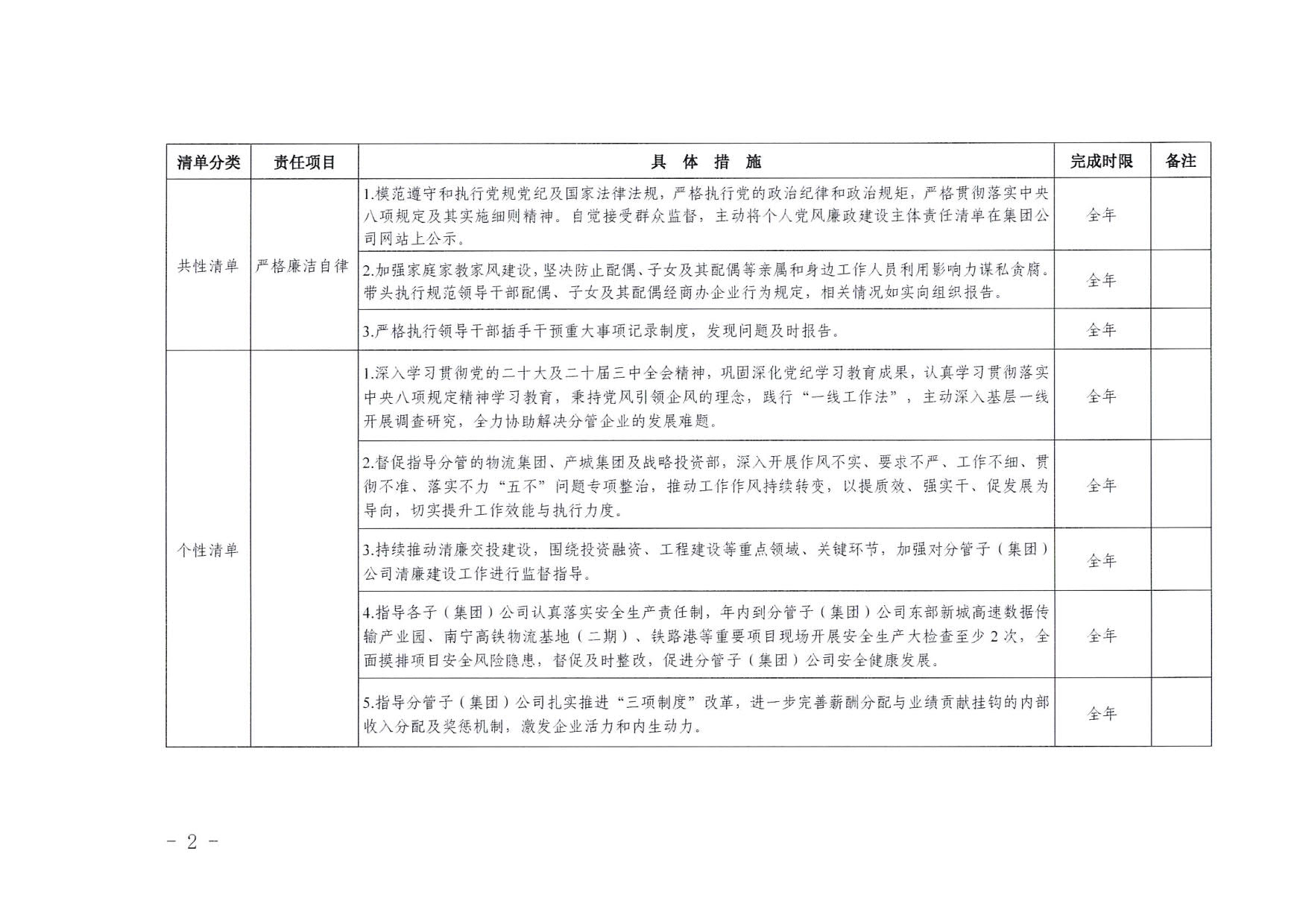 南寧交投集團領(lǐng)導(dǎo)班子其他成員2025年度黨風廉政建設(shè)“一崗雙責”清單(六)